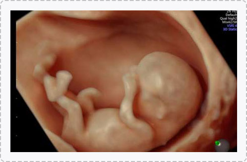 四维彩超能排查遗传性综合征等胎儿早期疾病。多角度观察宫内胎儿的生长发育情况,为早期诊断胎儿先天性体表畸形和先天性心脏疾病提供科学依据。